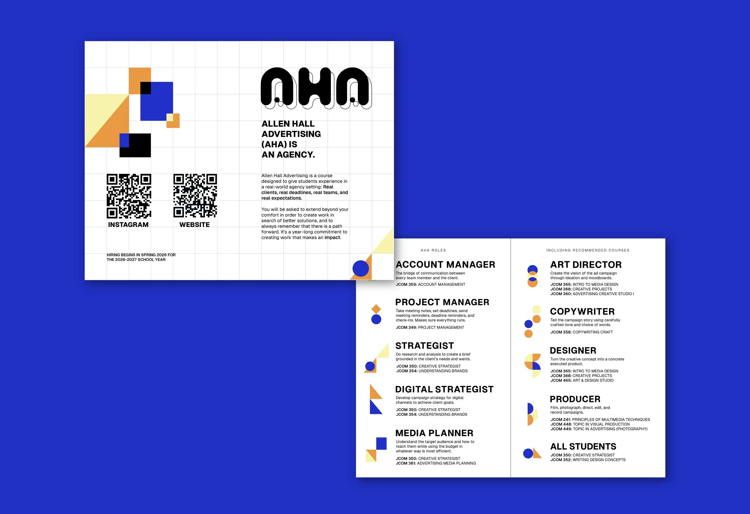 As the current Director of Design starting September 2025, I collaborate with the AHA Brand Manager and other creative Directors to create promotional material about AHA. Our goal is to create a cohesive identity, and this year we went with an analog, case file structure of design.